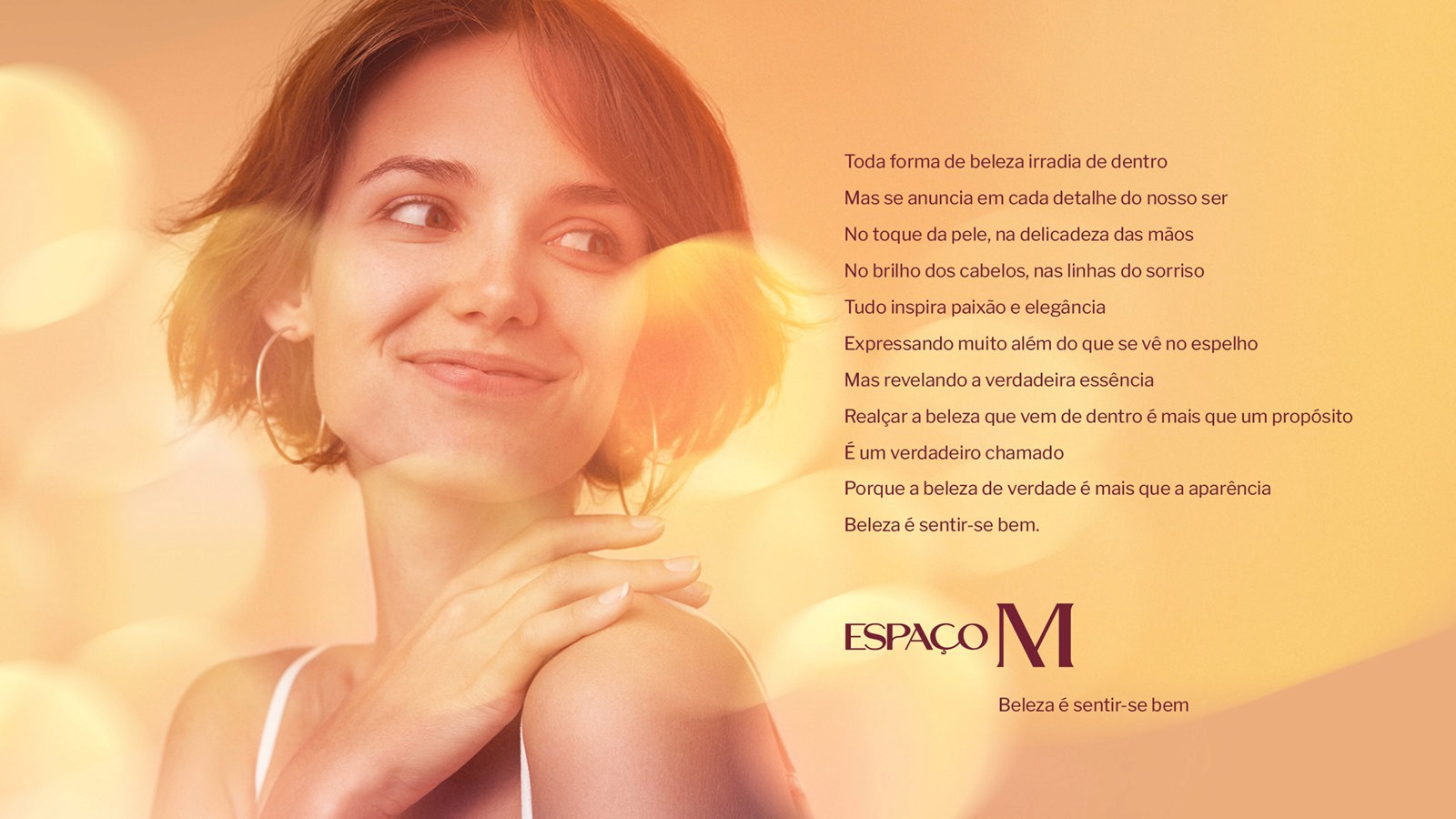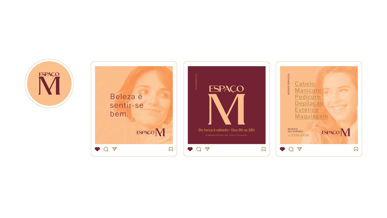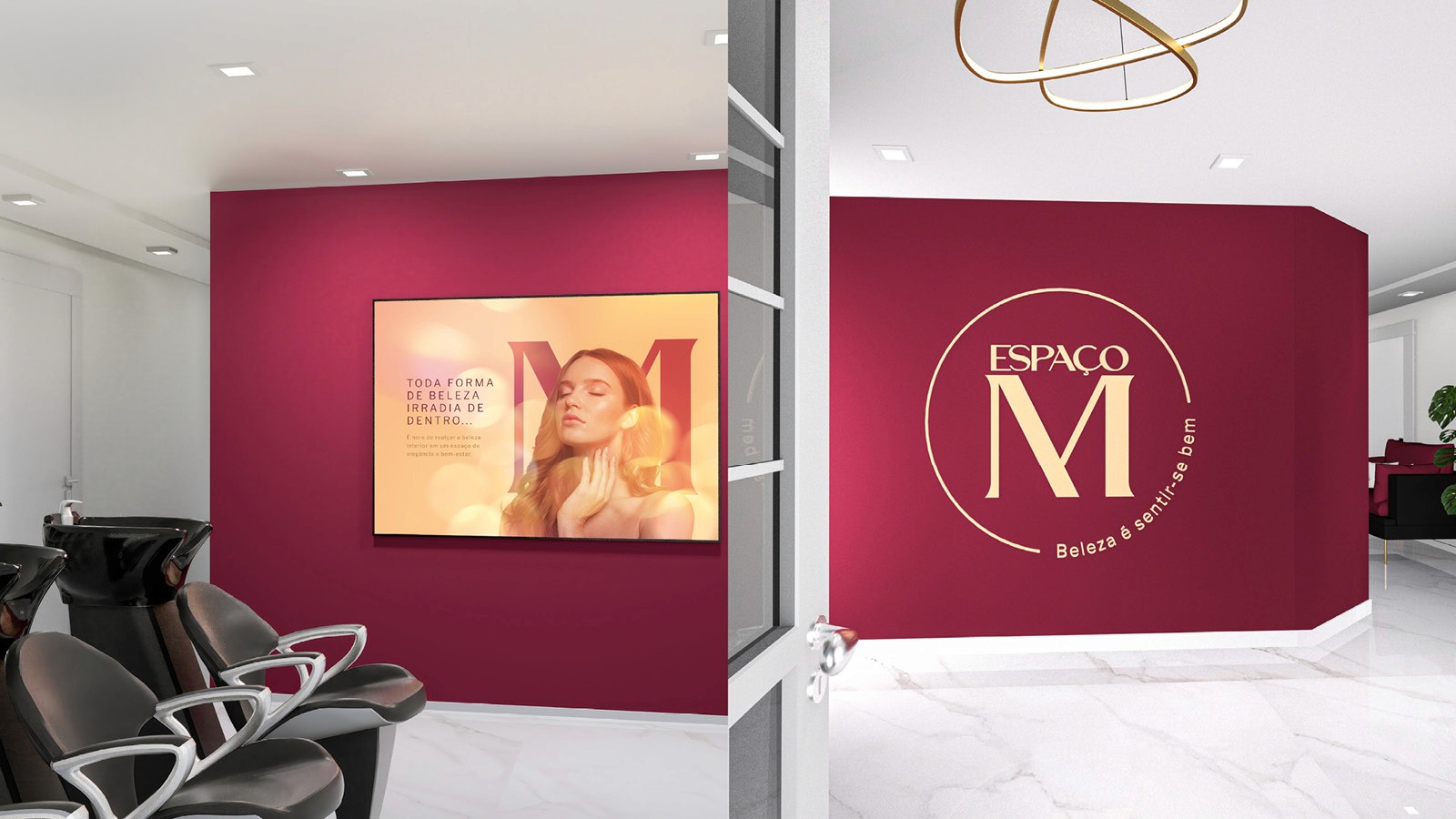 O Espaço M é um tradicional salão de beleza, reconhecido pela qualidade de seus serviços, especialmente em cabelo e mega hair, porém também oferecendo outras opções de serviços de beleza e estética. Neste projeto, tivemos o objetivo de redefinir a construção da marca, corrigindo seus problemas de comunicação, a começar pela grafia do nome. No conceito criativo, foi definida a letra M como ponto de partida para a construção de um símbolo memorável, harmonizando linhas de diferentes espessuras na tipografia para alcançar um padrão estético elegante. Essa composição é realçada por uma nova paleta de cores moderna e sofisticada, promovendo assim uma forte conexão da marca com o segmento de beleza.