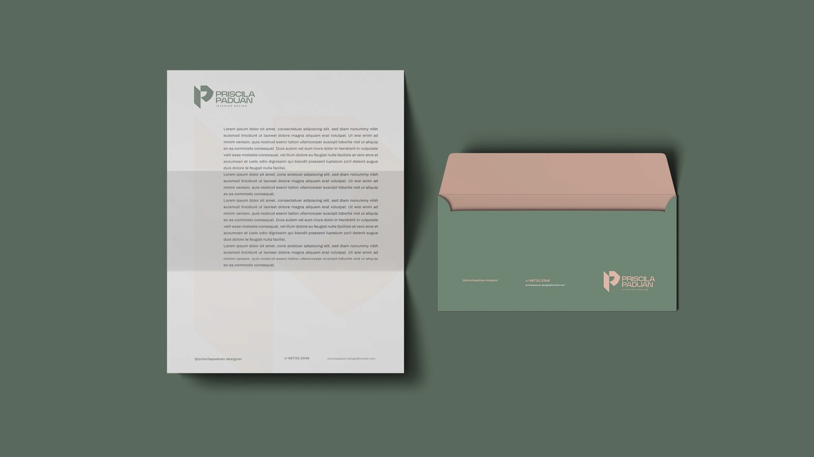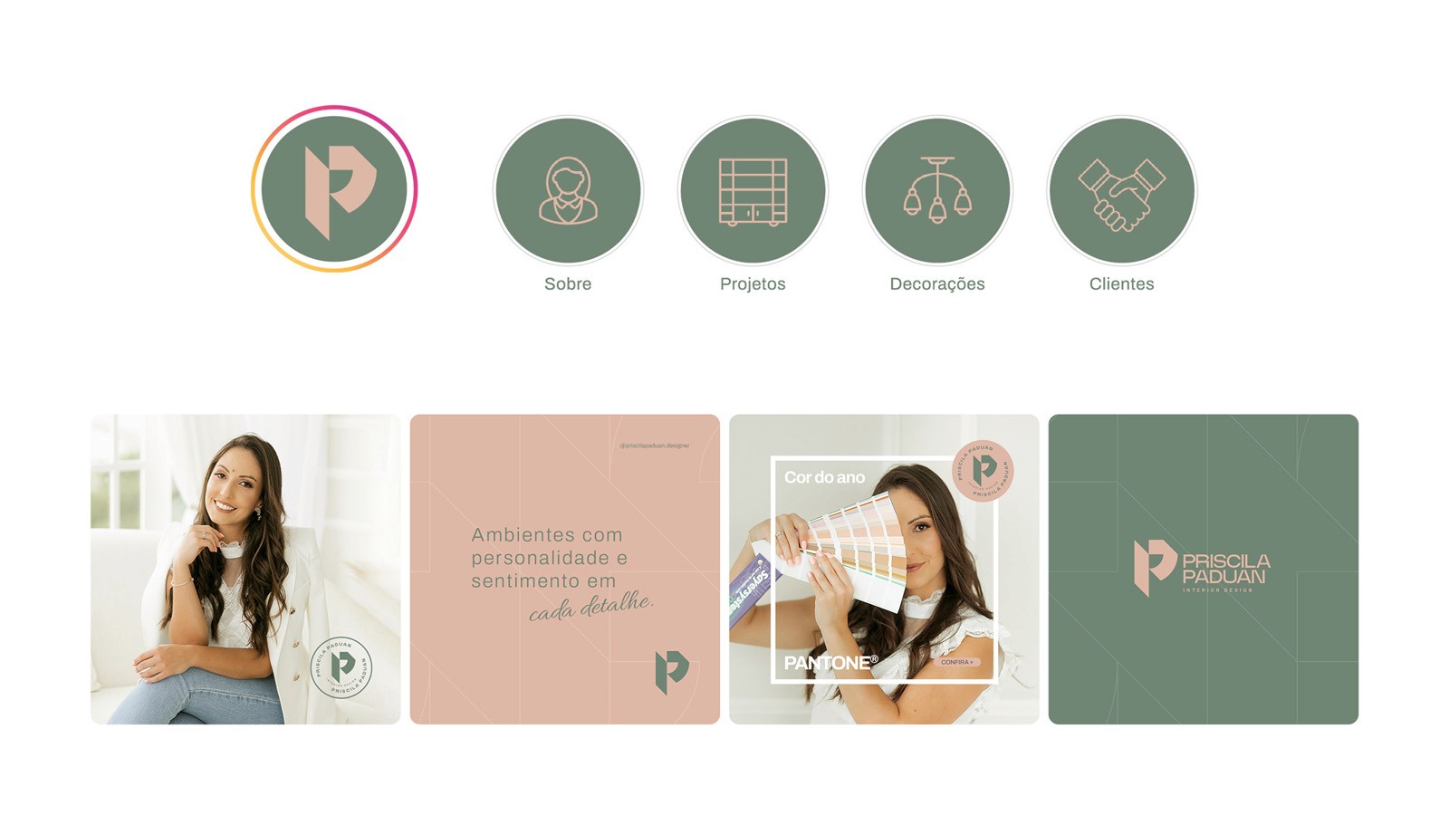 To create the visual identity for interior designer Priscila Paduan, our challenge was to translate her skills as both a person and a professional into visual elements: her versatility, attention to detail, and, above all, the care and emotion she applies to all her projects. The brand strikes a balance between the technical side, represented by straight lines and angles, and the human side, with gently rounded curves, resulting in an elegant and highly personal design.